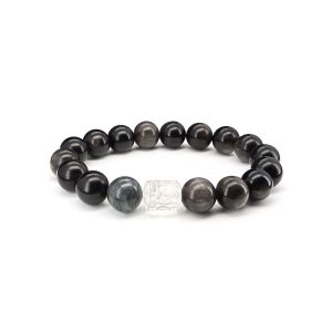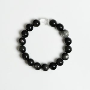Silver Obsidian White Crystal Barrel Bead Strand (Men)