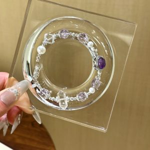 Amethyst White Ghost White Crystal Square Bracelet